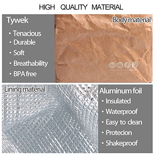 - ★HIGH QUALITY--6Liters(8"Long*4.3"Width*10"Height) Body material is strong Tywek fabric, light weight, durable, tenacious, resistant to tear, water-resistance, breathable. since the fiber meticulous, liquid water, oil cannot be permeate easily, but gas and vapor can pass through, easy to clean when food spilled, the inner is constructed of aluminum foil which is modified high quality, leak-proof, we checked each product and make sure it's functional. .