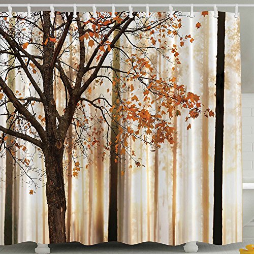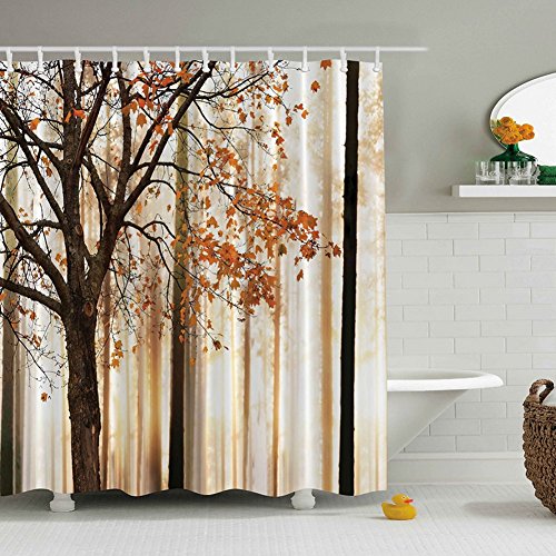 GDAE10 3DArt Paintings Shower Curtain, Premium Polyester Home Curtains, Water-resistant Bathroom Decorations(including 12 hooks) (Red maple leaf forest)