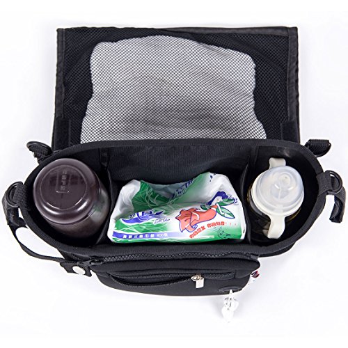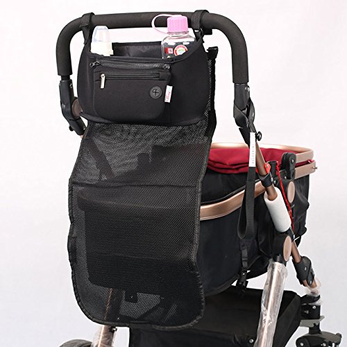 LUCEAR BABY STROLLER ORGANIZER DIAPER BAG, DUAL CUP HOLDERS, FRONT ZIPPERED PHONE POUCH, BACK BIG MESH DIAPER POCKET, BEST BABY STROLLER ACCESSORY GIFT
