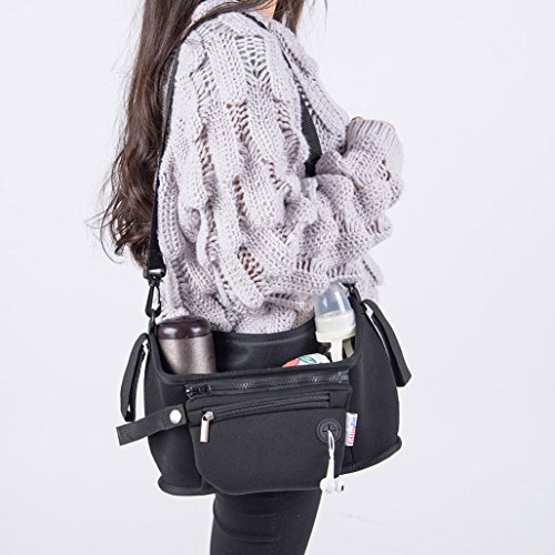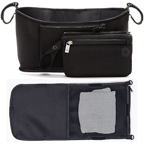 Best Quality of Stroller Organizer for baby and mommy - Sturdy neoprene material; Insulated drink holders stretch to fit most cup and bottle, Adjustable velcro straps fit most strollers