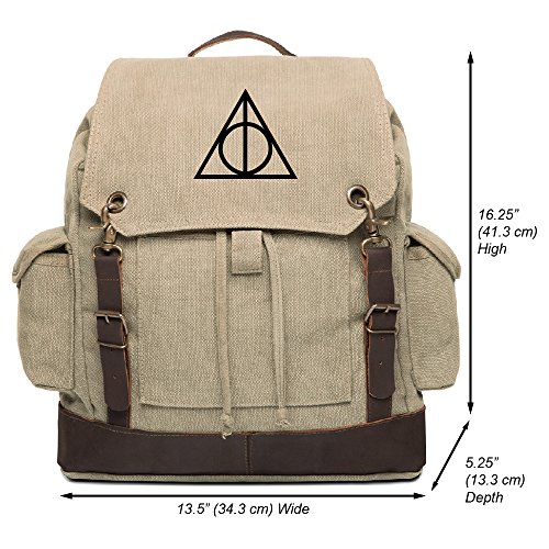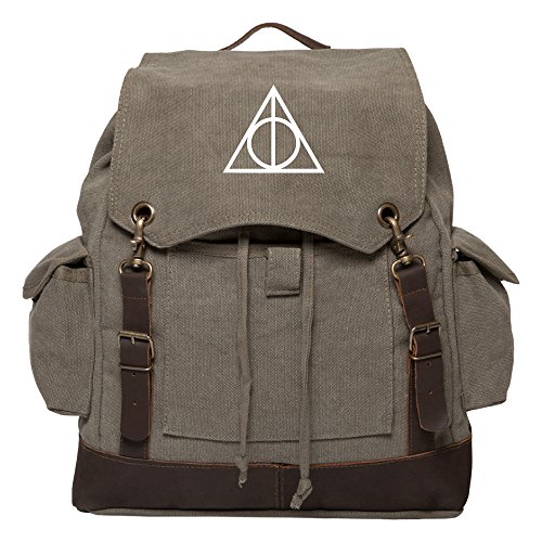 -. Title : Deathly Hallows Harry Potter Vintage Canvas Rucksack Backpack w/ Leather Straps