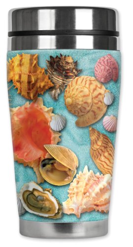 Mugzie Seashells Travel Mug with Insulated Wetsuit Cover, 16 oz, Black