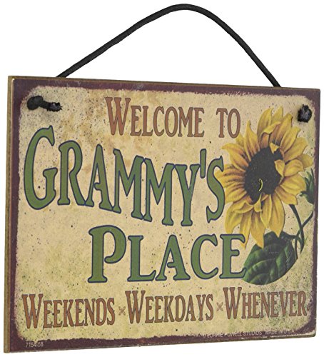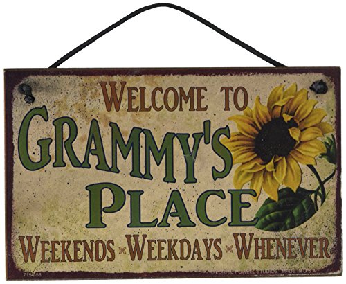 5x8 Vintage Style Sign with Sunflower Saying, "Welcome to GRAMMY'S PLACE Weekends, Weekdays, Whenever " Decorative Fun Universal Household Signs from Egbert's Treasures