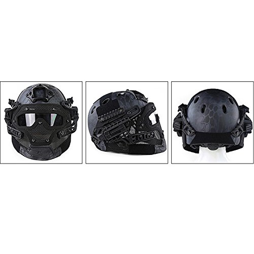 -. Feature : Protection Type: Full-covered Face Protection. Universal Fit for most people's head. / Applicable Scene: Tactical Necessary, Outdoor Activities, Daily Leisure, Home Entertainment etc. / Features: Lightweight, easy to carry and storage. Universal Integration. Helmet+Mask+Goggle.