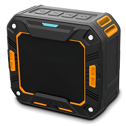-. Feature : High quality crystal clear sound:The Bluetooth speaker with 5W*2 speakers, it streams incredible stereo sound with full range output, enable powerful, crisp, bass rich music wherever you go / Ultra portable: The speaker size is 3.9 x 3.54 x 1.97 inches and weight is only 10.05 ounces, you can carry it with you easily at anytime and anywhere.Distortion-free at maximum volume; room filling sound,perfect for home, dorm room, kitchen, bathroom, car, parties / Water resistant IP65 :Waterproof, shockproof, dustproof, typical outdoor shower speaker, red construction,perfect for the beach, poolside, car, boat & golf cart -- IP65 rating speaker can resist gentle water spray & splash but cannot be partially or fully submerged / Built in long lasting usage:Wireless speakers Bluetooth powered by built-in 2000mAh rechargeable lithium battery which can support you up to 8 hours playing time / Bluetooth 4.1, CSR4.1 : Bluetooth 4.1 class II and supports A2DP V1.2, AVRCP V1.4 which can cover all brands devices which with Bluetooth function. You can use the Bluetooth speakers to get hands-free calls by built in microphone from smartphones