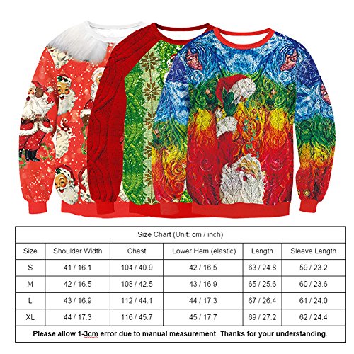 Specification: Item Type: Christmas Sweatshirt Materials: polyester spandex Color: multicolored Optional sizes: S, M, L, XL Package weight:345g Please allow 1-3cm error due to manual measurement. Thank you for your understanding.
