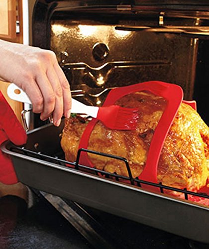 Studio : Bekith Publisher : Bekith Product Description This silicone turkey lifter is great for turkey, roasts, and fish. It's convenient handles and durable construction make lifting large roasts and poultry effortless. Use this reusable Silicone Turkey Lifter Set to take turkeys and other roasted meats out of the oven safely. Place the flexible silicone sling underneath the meat before putting in the oven. When the food is done, lift up the handles and move it to your carving board or serving platter.This convenient set includes a roast lifter, that allows you to easily transport your cooked roast from the roasting pan to your cutting board. 0
