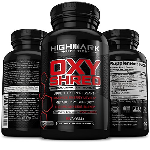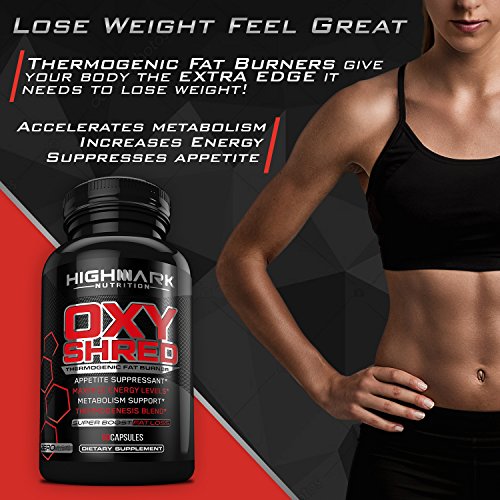 -. Title : HighMark Nutrition Oxy Shred Thermogenic Fat Burner Weight Loss Pills | Lose Weight with Metabolism Support, Green Tea Extract, Raspberry Ketones, Appetite Suppressant & Energy Level Booster 60ct
