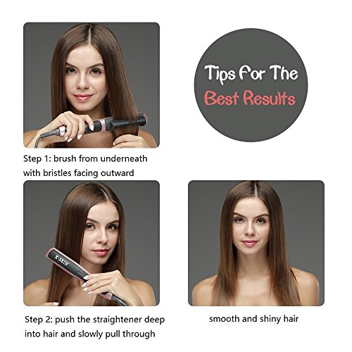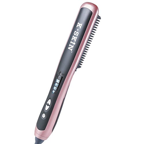 K-SKIN set up with the goal of providing innovative beauty tools that deliver salon-quality results at minimal cost. The K-SKIN Tourmaline Ceramic Straightening Comb is just one example of our smart technology. Simply comb your hair from underneath with bristles facing outward and it will be straight and smooth in minutes. This hair straightener features tourmaline ceramic heater, releasing natural ions and far-infrared heat, leaving smooth shiny hair. 23 plates on the comb quickly heating up under one minute, equal to 22 little flat irons working at the same time, much more efficient to cut down your hair styling time. Other features: 6 adjustable heat settings from 265℉ to 395℉; 360° professional swivel cordTIP for great straightening result: Please place the straightener under hair section with bristles facing outward, then push the straightener deep into hair section and slowly pull through hair.