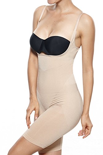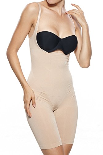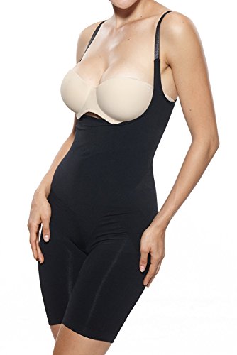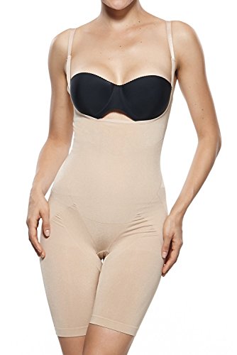 Binding : Apparel Product Description Experience firm control in this open-bust shapewear bodysuit. Convenient open crotch gusset. Soft finish, ultra-fine stretch microfiber. Firms tummy, hips, thighs and rear. Targeted zone compression thanks to seamless yarns. This body shaper will flatten your midsection and lift up the breast and buttocks. Wear it under everyday clothes or on special occasions for a sleeker and more attractive silhouette.