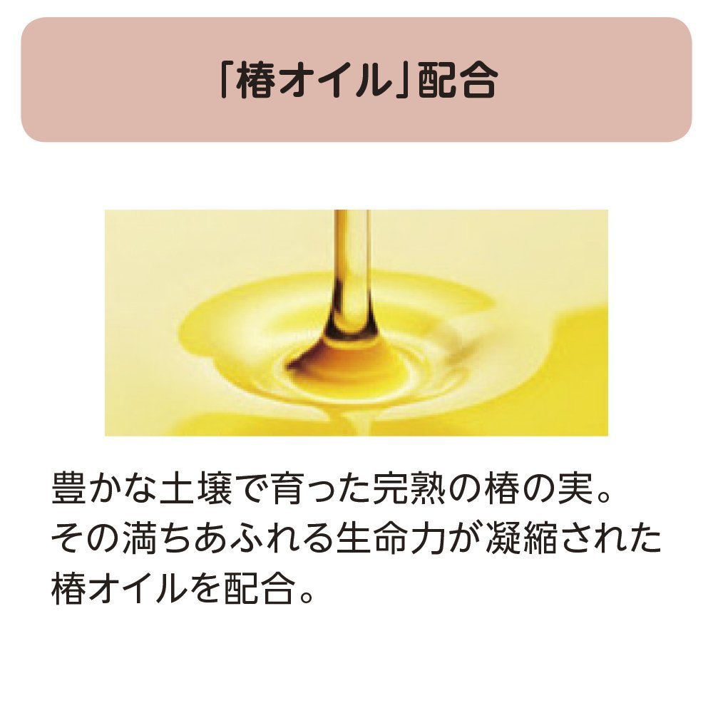 Tsubaki oil (gloss), Camellia S (Tsubaki koji fermented extract, sorbitol: hair scalp, softening · moisturizing) formulation, moisturizing ingredients: persistent hyaluronic acid (acetylated sodium hyaluronate, sorbitol)