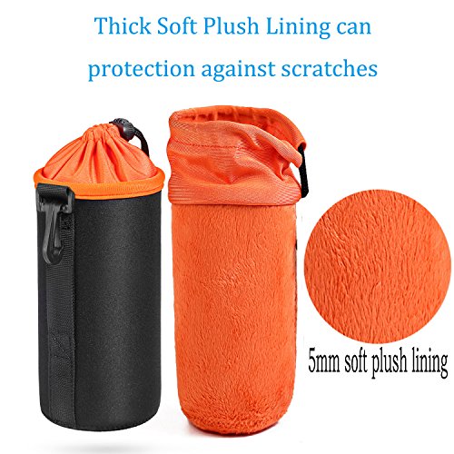 New Design: Securely close the top with belt loops and quick clips to ensure your lens will not be exposed and slide out, easy to carry and place, great lens case for photographer. Thick Neoprene with 5mm Soft Plush Lining Give Your Camera Lens Enough Protection
