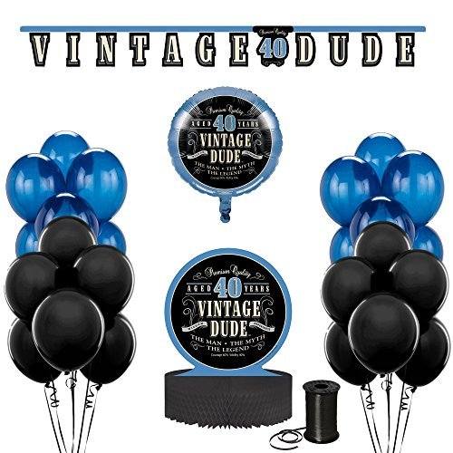 Studio : SKP Ventures Publisher : SKP Ventures Binding : Health and Beauty Product Description Celebrate your Loved One turning 40 with this Vintage Dude 40th Birthday Party Celebration Decoration Bundle!!!! Party Decoration Bundle Includes - Jointed Banner, Honeycomb Centerpiece, Balloons and Curling Ribbon. Easy Preparation and Effortless Cleanup. 0