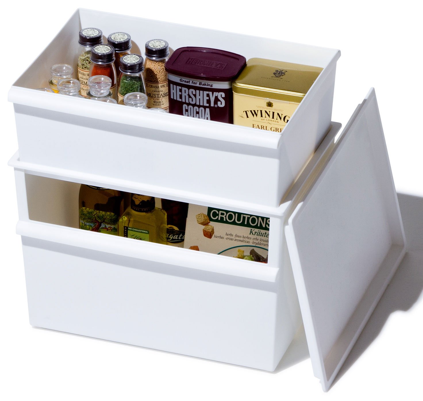 Combination free storage box, lid dedicated to container wide installation.
