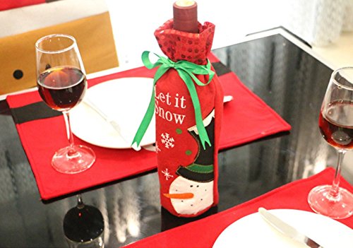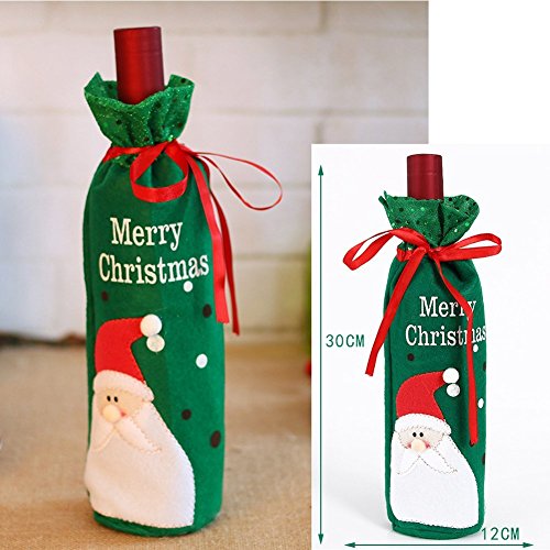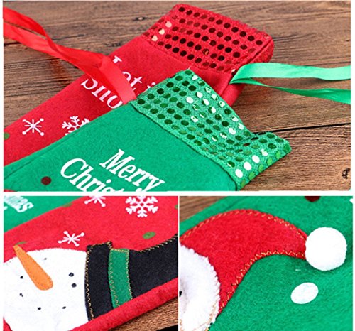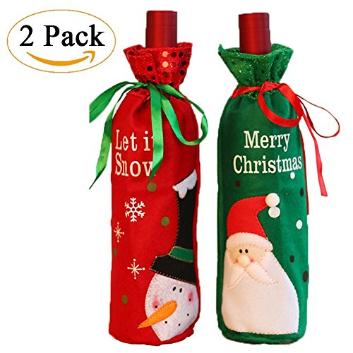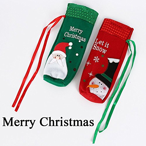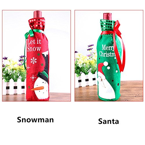 Christmas Wine Bottle Bag Cover for Xmas Gift Dinner Party Table Holiday Decoration, YHMALL Santa, Snowman Party Hotel Kitchen Table Decoration -2 Pack(Red&Green)