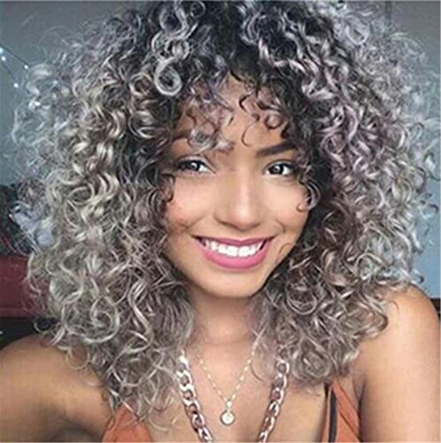 Ombre Grey Synthetic Wigs For Women Heat Resistant Short Bob Natural Kinky Curly Afro No Lace Wigs (grey)
