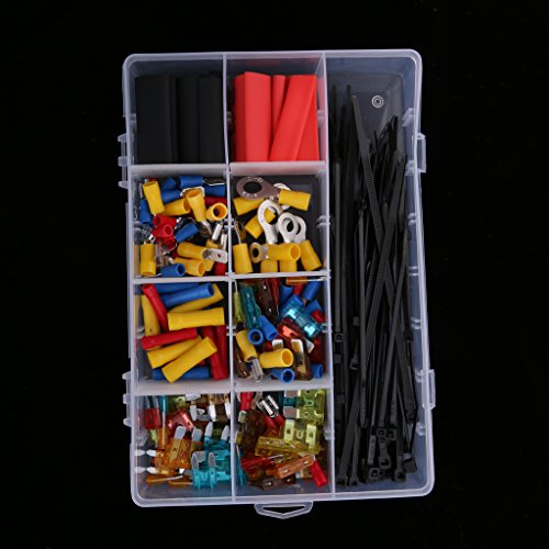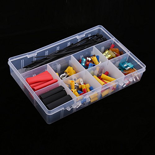 Description: - Including ring terminals, spade terminals, butt connectors, standard and mini fuses, fasteners.. - Great for garage and auto shop. - Material: Plastic Metal - Box Sizes: Approx. 16.5*13*3.5cm/6.5*5.1*1.4 Inch Specification: - Standard Fuses: - 5*5Amp - 5*7.5Amp - 5*10Amp - 5*15Amp - 5*20Amp - Mini Fuses: - 5*5Amp - 5*7.5Amp - 5*10Amp - 5*15Amp - 5*20Amp - Butt Connectors: - 5*Red - 5*Blue - 5*Yellow - Round Terminals: - 9*4mm - 9*6mm - 9*8mm - You will receive everything on the pictures. Package Includes: 1 Box of Terminals Kit 0 |