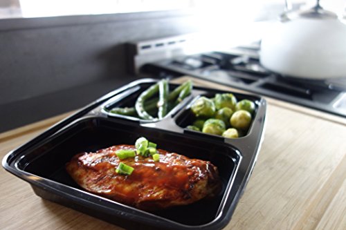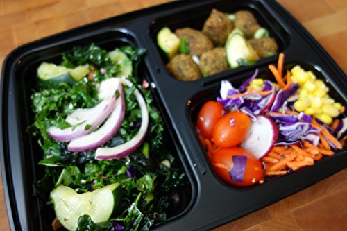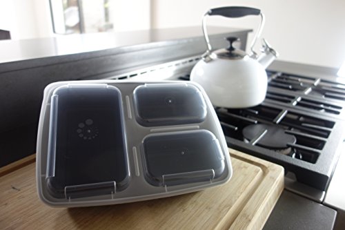 REUSABLE, 3-COMPARTMENT SEPARATION: Simplify Meal Time and Keep Vegetables, Fruits, and Proteins Separate. Food Stays Fresher Longer and Easily Stacks in the Refrigerator. Pack in a Gym Bag, Take Your Food To Go. Dishwasher Safe. 32oz Capacity (16oz, 8oz, 8oz). Perfect For Portion Control!