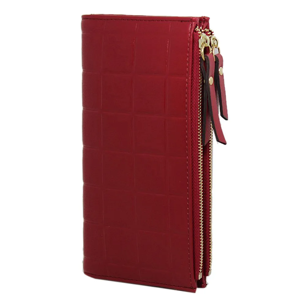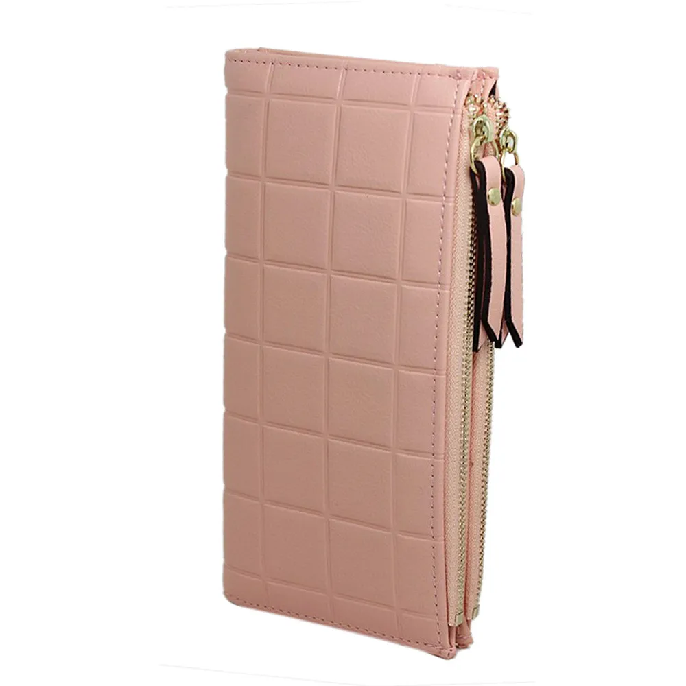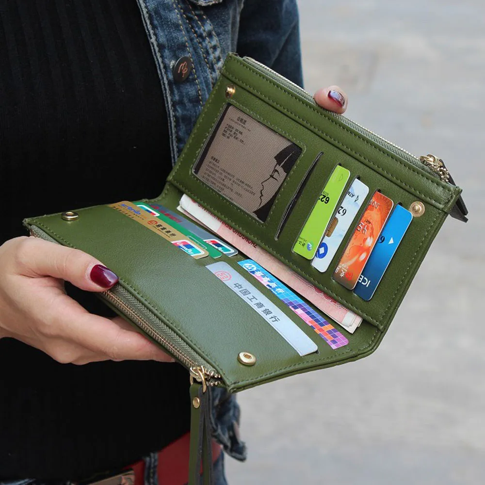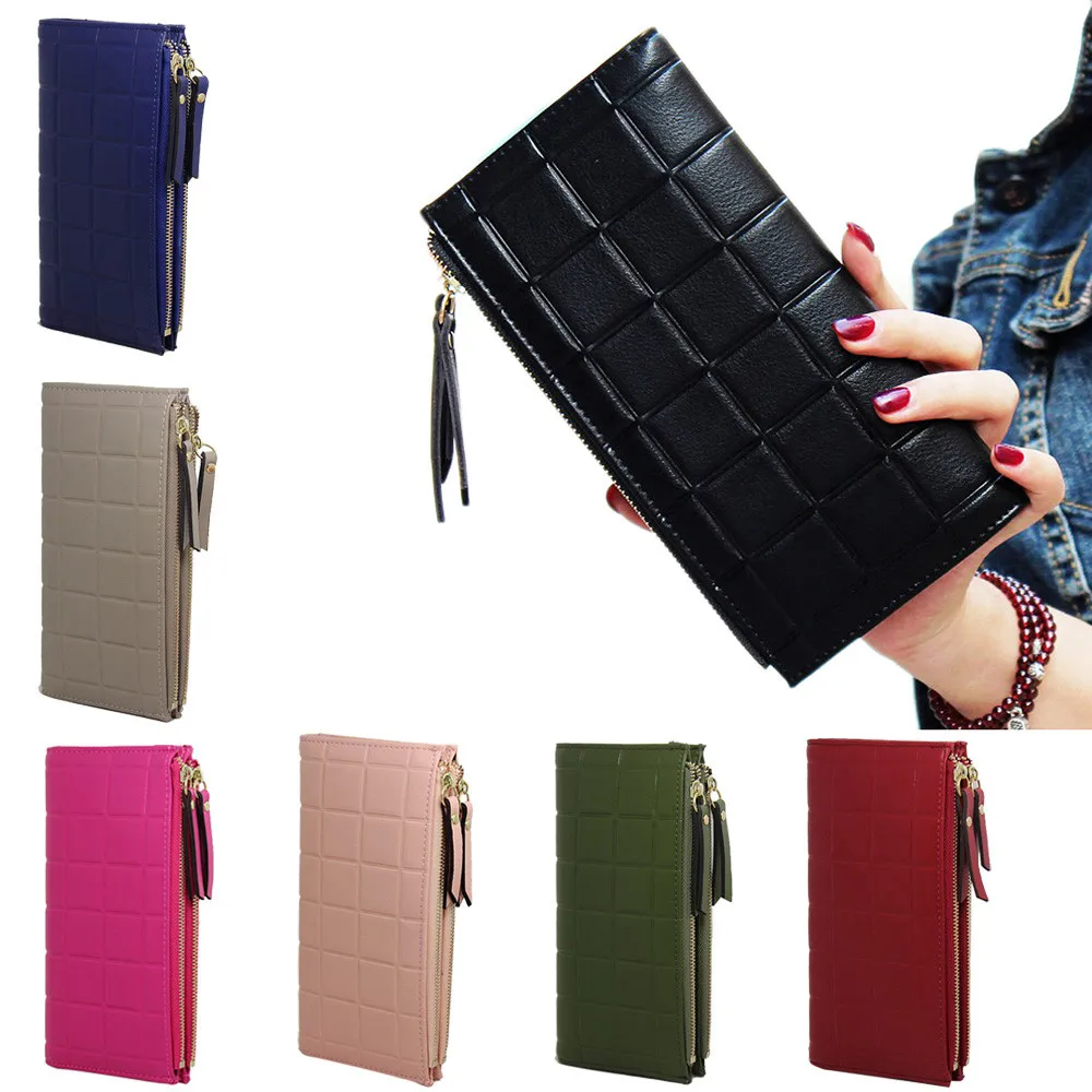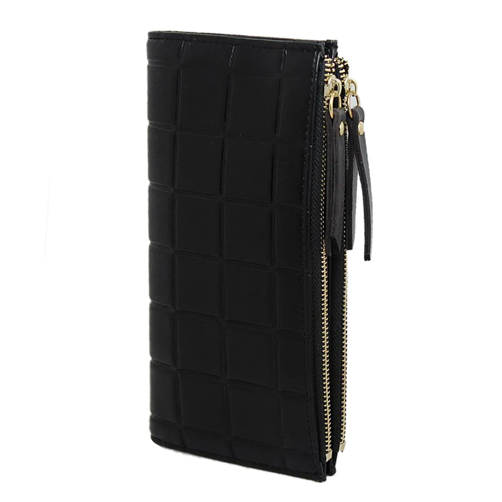 purse clasp:Long Dull Polish PU Leather Wallet Female Double Zipper Clutch Coin P