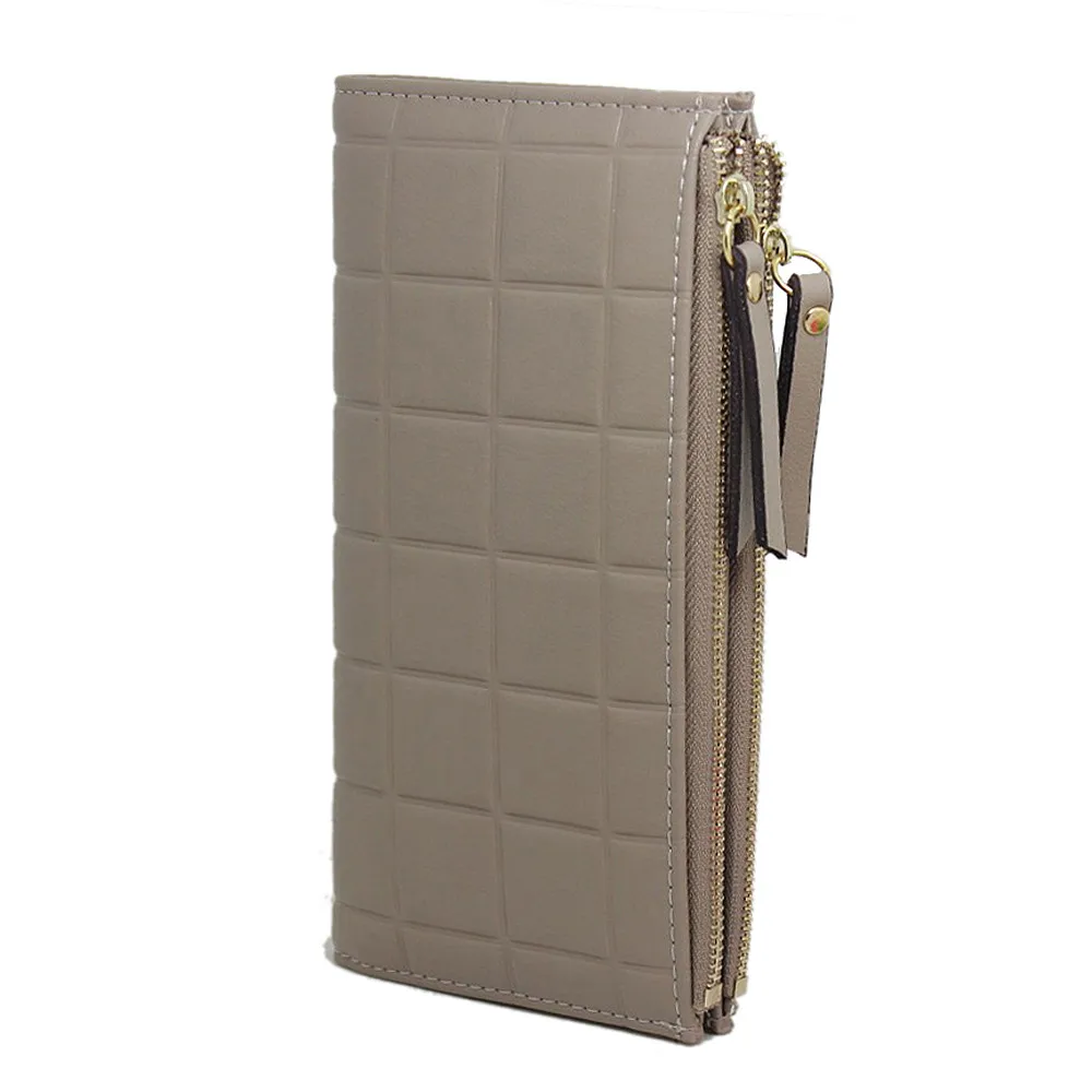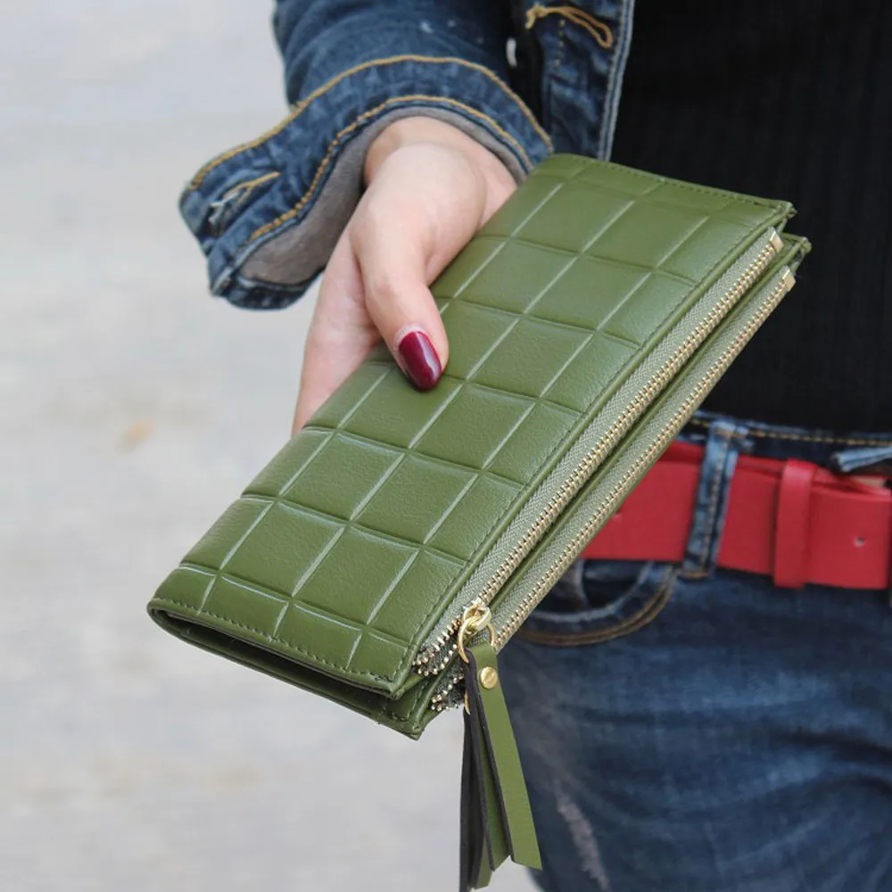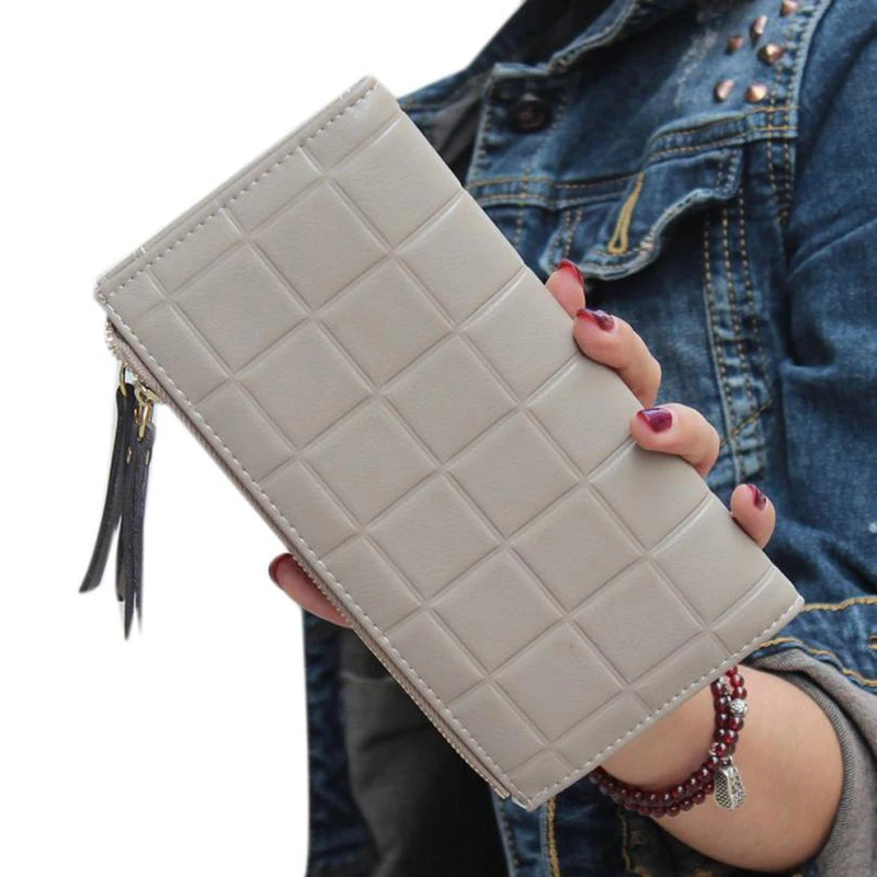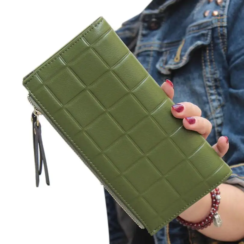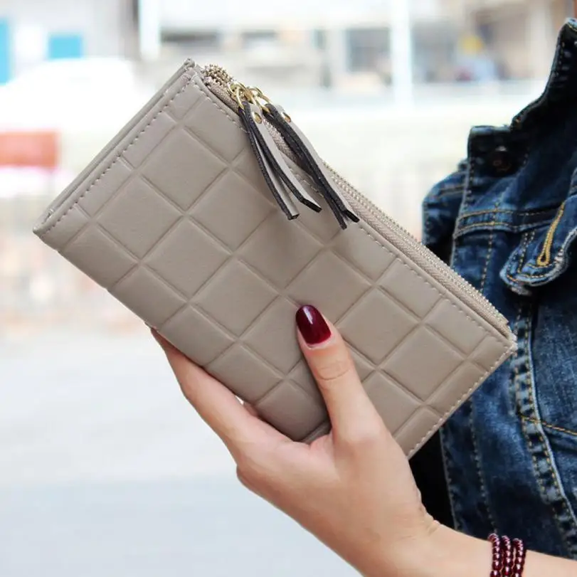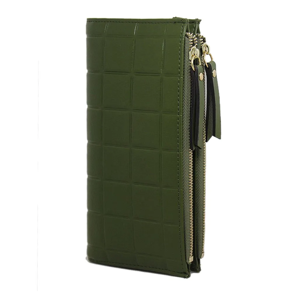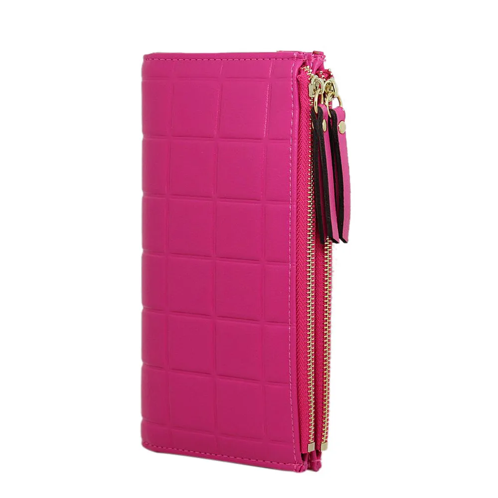 purse clasp:Long Dull Polish PU Leather Wallet Female Double Zipper Clutch Coin P