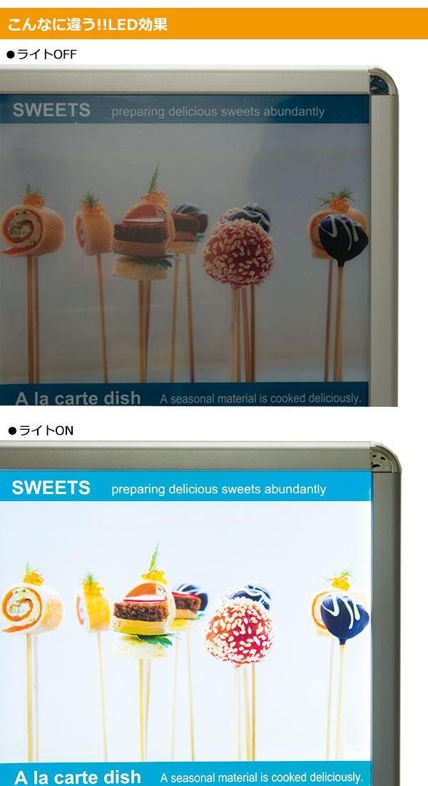 | 仕様 | 四方開閉式 消費電力:27.72W 照度:2400LUX 厚さ:21mm フレーム幅:34mm 導光板の厚さ:5mm 透明板厚み:PETt1.5mm 有効画面寸:587×835mm 壁面取付け穴:8ヶ所 透明板×1枚(本体にセット済) 保証6ヶ月 |