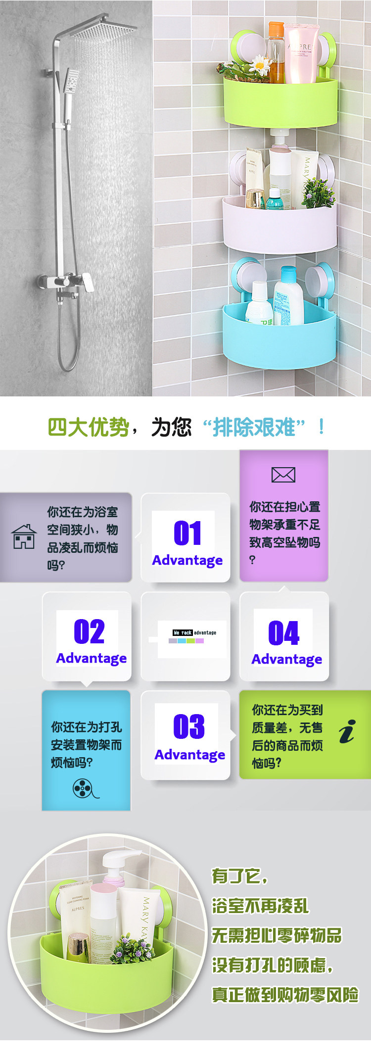 吸盘浴室置物架强力三角 壁挂卫生间收纳架子卫浴洗手间储物