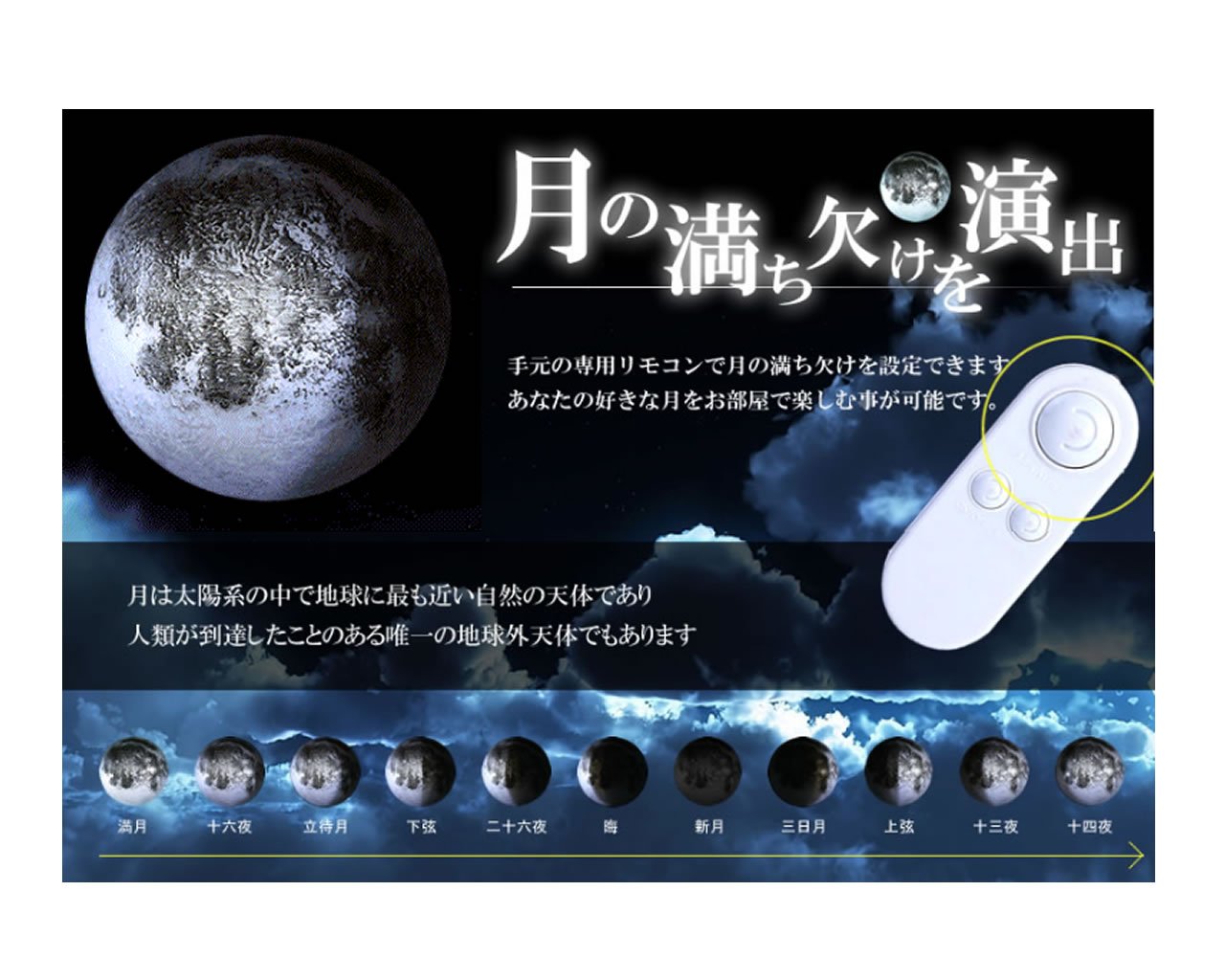 You can set the phases of the moon with the dedicated remote control at hand