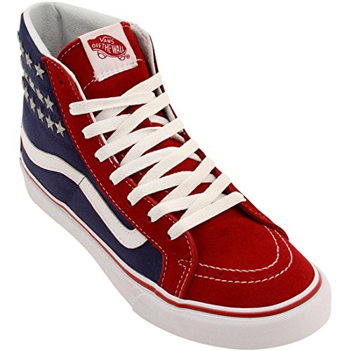 -. Title : SK8-Hi Slim (Studded Stars) Red/ Blue Unisex Sneakers VN-018IH0F (Men 6.0 Women 7.5)