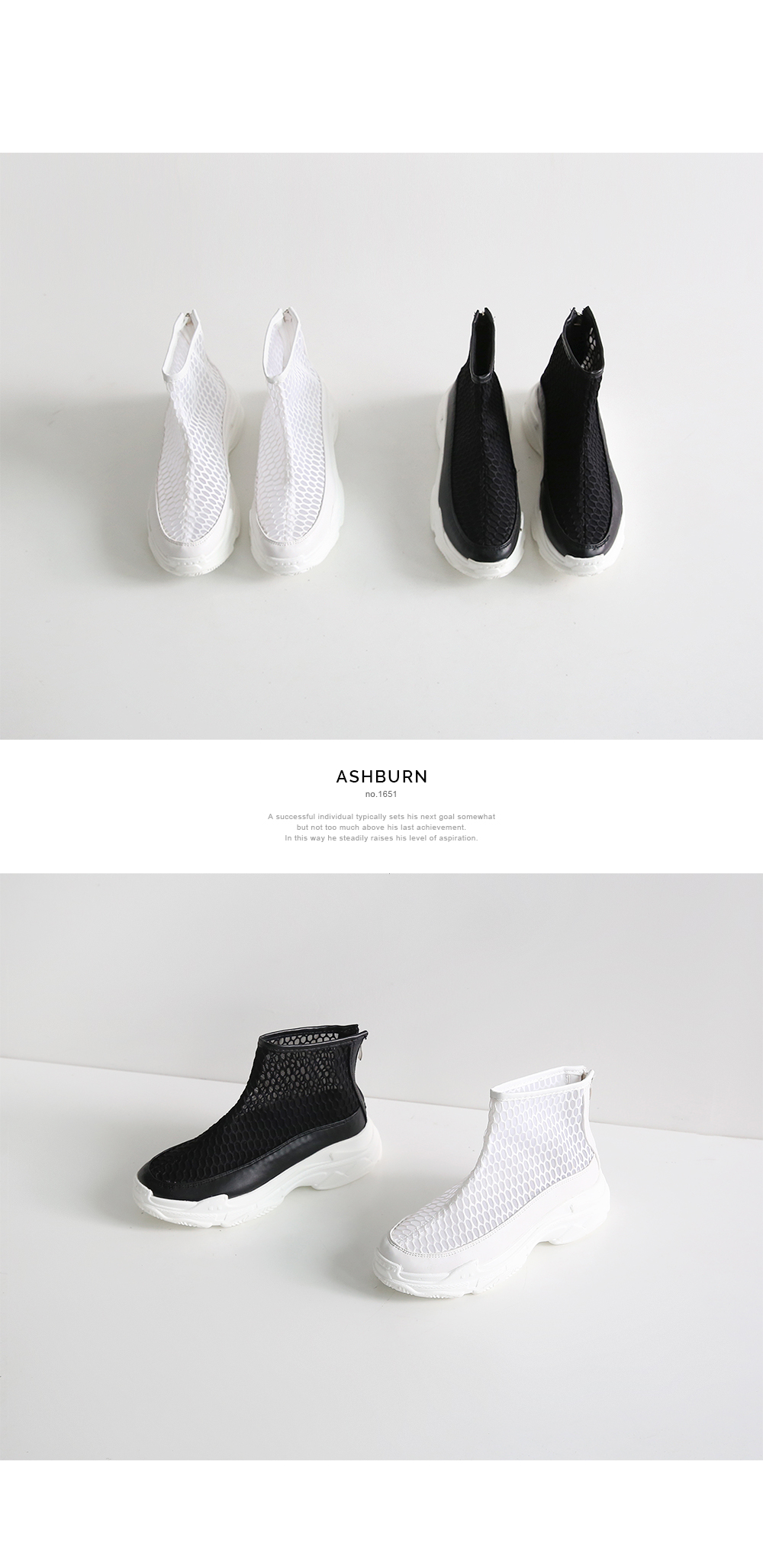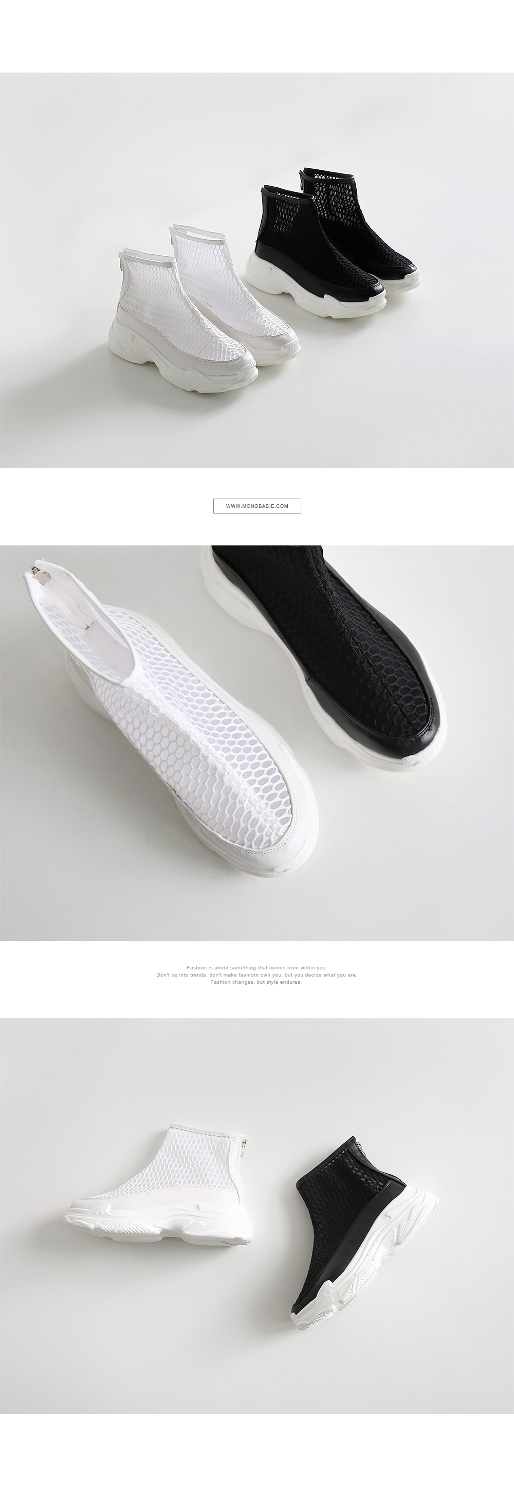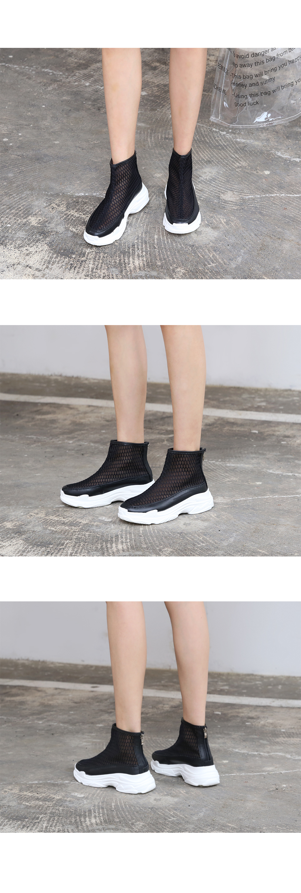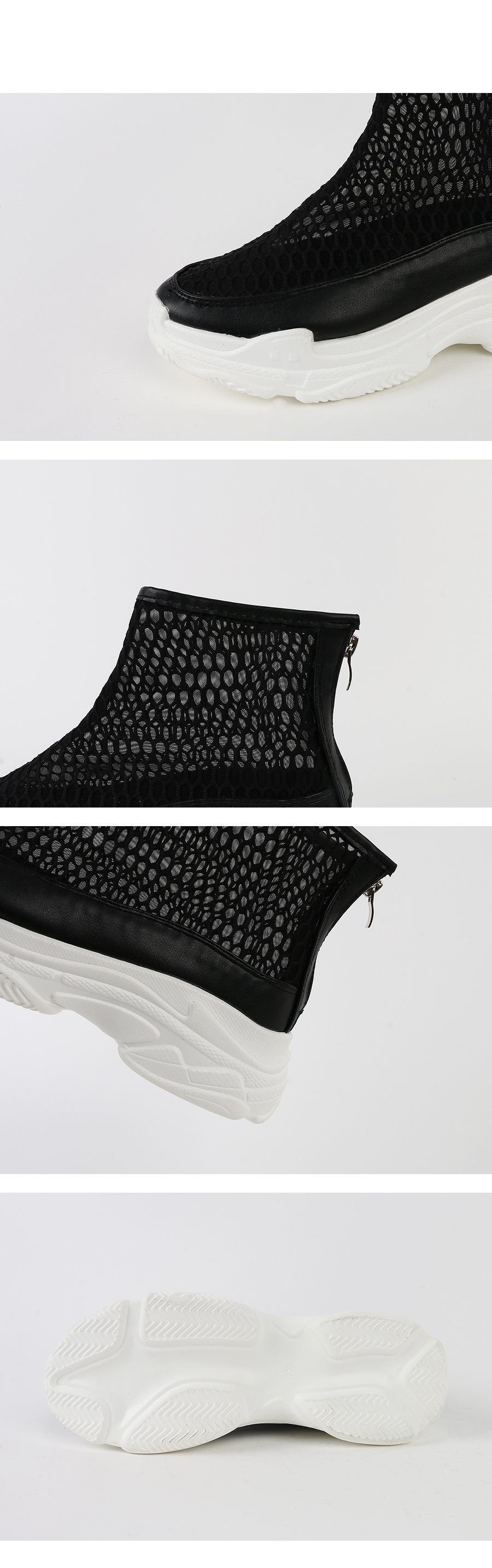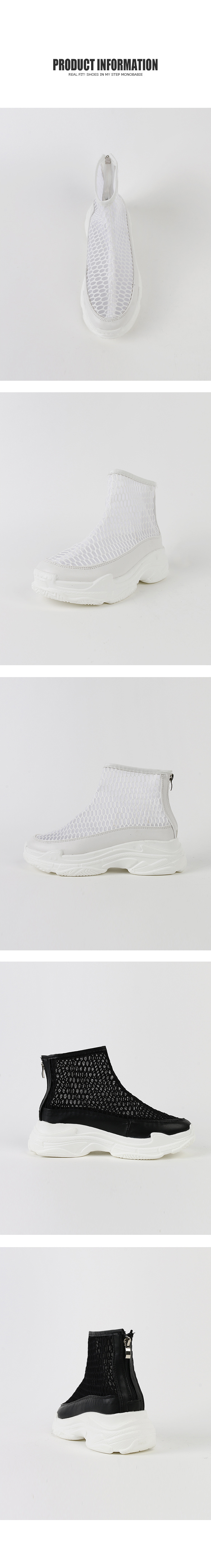 메쉬 소재로 되어있는 하이형 스니커즈입니다.