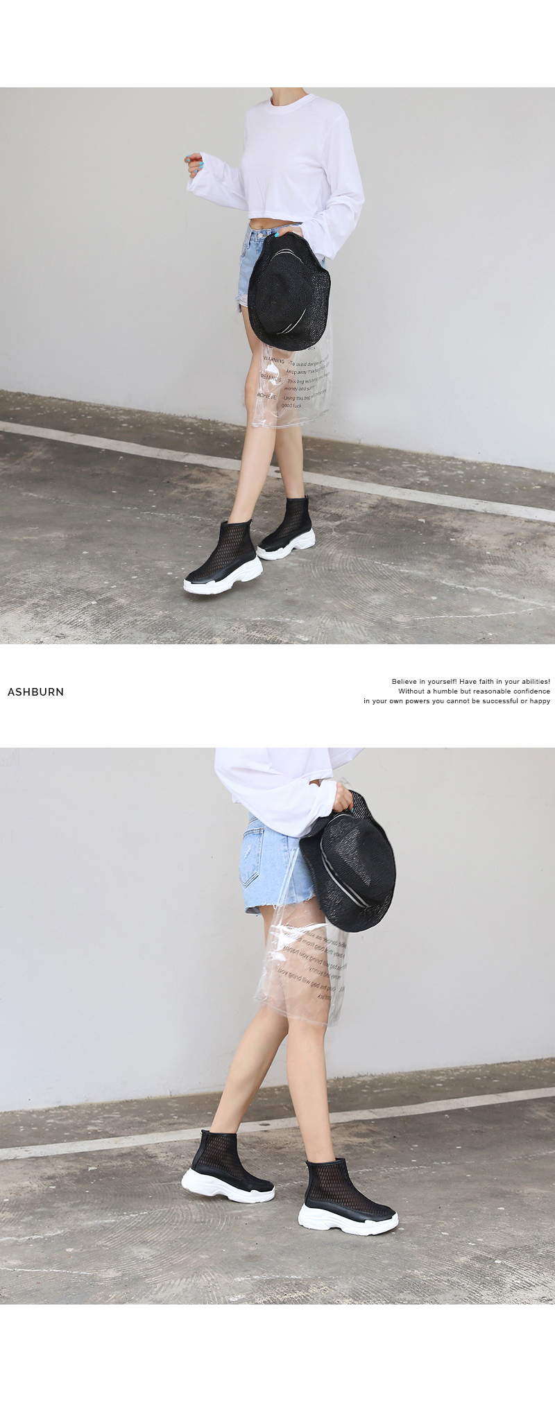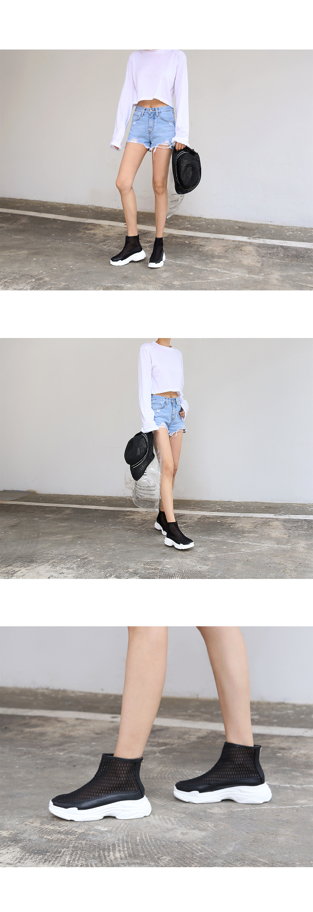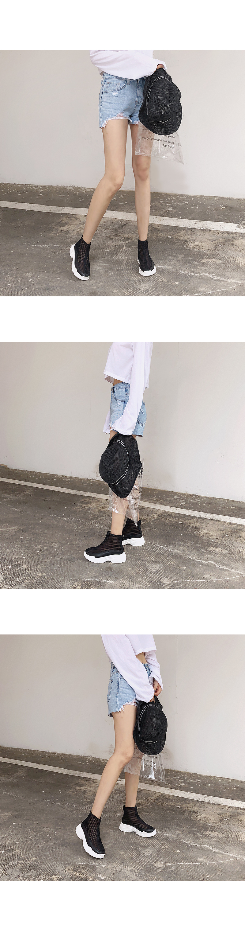 여름에 더워보일까봐 하이형 스니커즈를 신는것을 꺼려하시는 많은 분들이 계시는데 이 아이템은 시원한 여름용 소재로 제작되고, 가벼운 무게감으로 여름에도 부담없이 신을 수 있습니다.