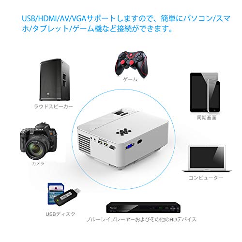 ❤このホームプロジェクターはUSB/HDMI/AV/VGAサポートしますので、簡単にパソコン/スマホ/タブレット/ゲーム機など接続ができます。