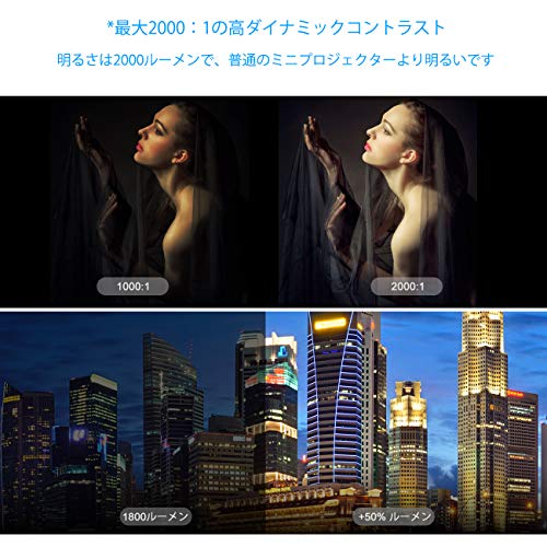 最 大 2000:1の高ダイナミックコントラストを実現します。高品質の映像や音楽を投写できます。