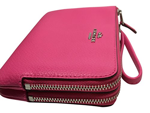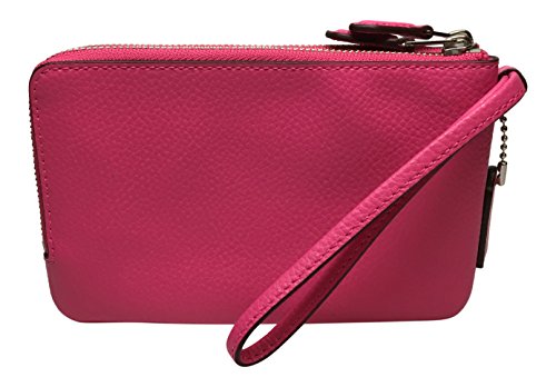 -. Title : Pebbled Leather Double Corner Zip Wristlet Bright Fuchsia F87590