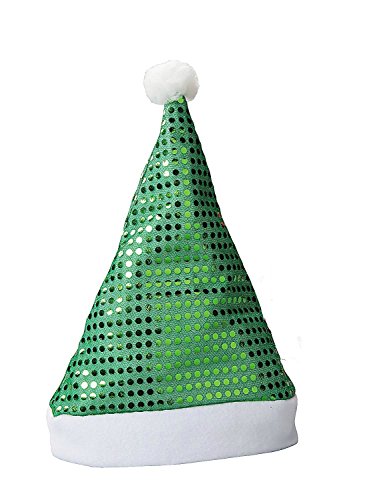 Title : Polyester Sequin Santa Hats (1 Pack) 22" circ. - Red or Green (Green)
