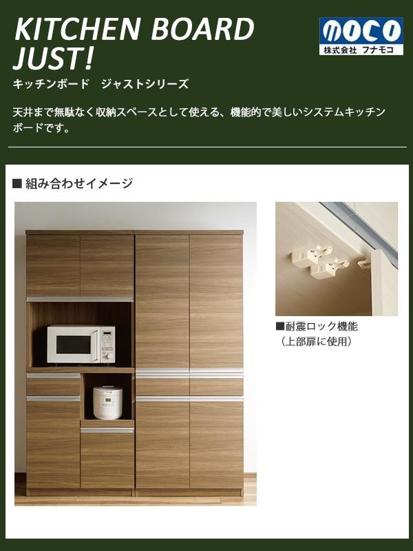 上部扉に耐震ロック機能がついた食器棚です。引出し部分はサビに強いステンレス製です。 |