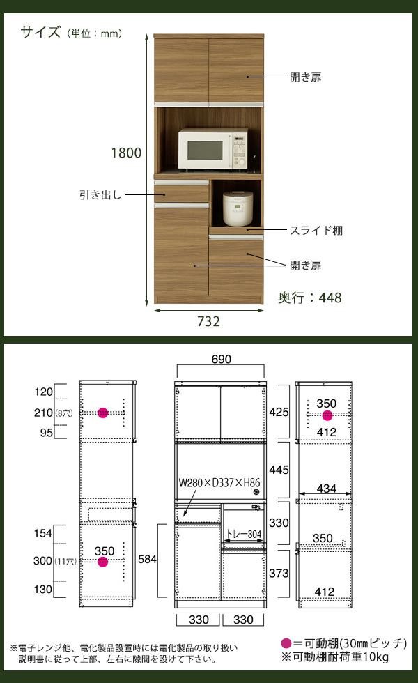 | サイズ | W732×D448×H1800mm 個装サイズ:76×47×182cm |