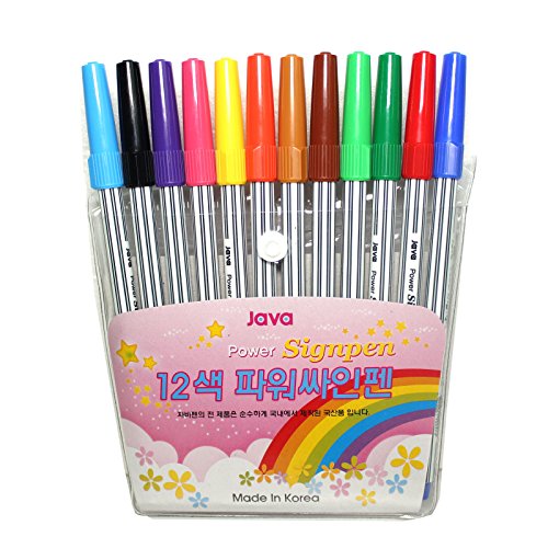 -. Title : JAVA Water-Based Felt - Tip Marker Pen, Power Sign pen - 12 Colors - 1 Set
