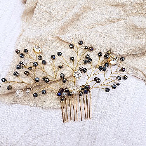 FXmimior Bridal Black Vintage Wedding Party Crystal Rhinestone Vintage Hair Comb Hair Accessories