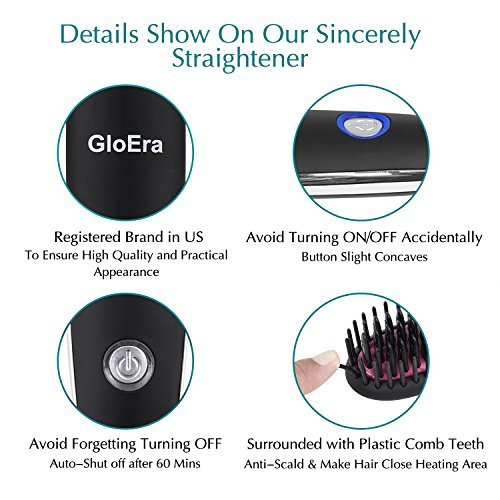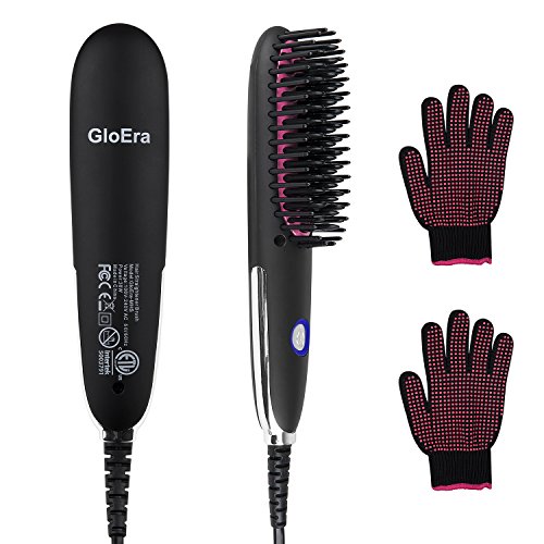 Hair Straightener Brush, GloEra Adjustable Temperature Fast Heating Mini Portable Lightweight Straightening Hair Brush with 2pcs Heat Resistant Gloves...