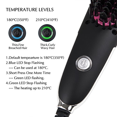 - LEADING PTC HEATING TECHNOLOGY: Heat quickly. Double side and high density heating comb teeth, more effective to straighten your hair. Straightening your hair when brushing, convenient and saving time, especially in the busy morning