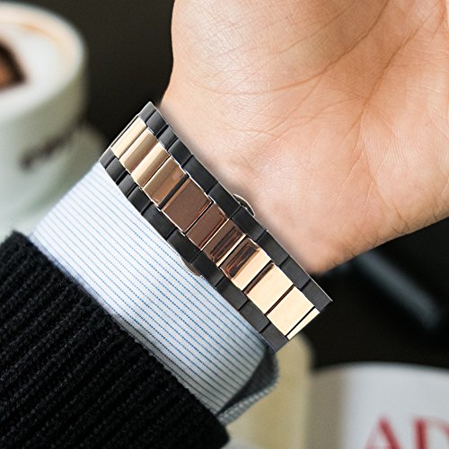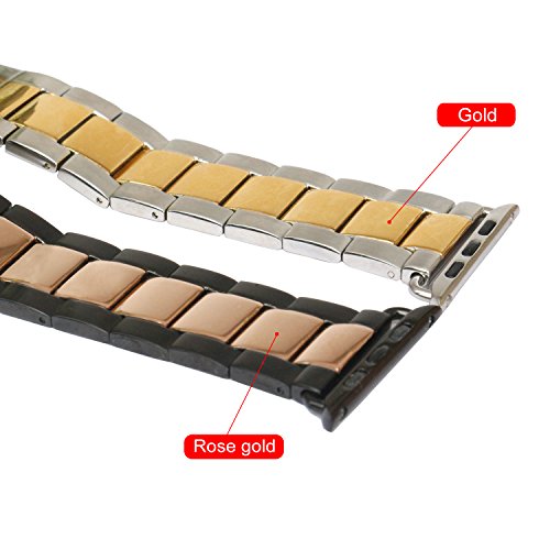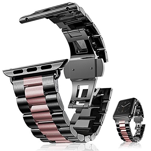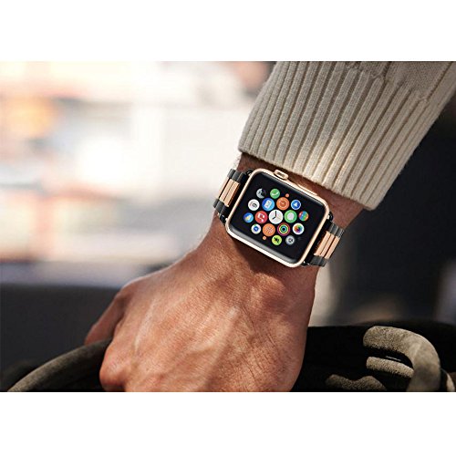 Studio : AWStech Publisher : AWStech Binding : Watch Product Description Color: Stainless Steel Strap-42mm Black Rosegold AWStech Replace stainless steel strap, Premium material, Precision design, Classic stylish watch band for your Apple watch. Suitable for wrist circumference: Apple Watch 38mm Strap - Suitable for 135-195mm (Mainly applicable to most women) Apple Watch 42mm Strap - Suitable for 140-205mm (Mainly applicable to most men) Specifications Applicable models: Apple Watch Strap Material: Stainless steel Weight: 100g Package Includes: 1 x Stainless Steel Band Strap Classic Butterfly Buckle Watch Bands 2 x strap removel tool (Free gift) 1 x Retail Boxed Packaging 0