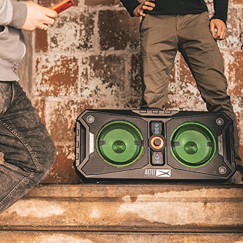 -. Binding : Electronics -. Brand : Altec Lansing -. Color : Black -. EAN : 0747705001436 -. Feature : EVERYTHING PROOF: A super durable design keeps the speaker water-proof and dirt proof. Perfect to use in all types of environments. / PORTABLE: A lightweight speaker with handles that can be carried anywhere. Charge it up from any outlet or even your car for an amazing tailgate / SOUND: The largest and loudest of its category. To pump out even more sound, put it in BEAST mode. Double the sound by linking a second XPEDITION to create a stereo pair. / BLUETOOTH: Built-in Bluetooth for easy music streaming from any of your favorite mobile devices. / LIGHT IT UP: 12 multi-colored LED light show, plus strobe lights, dances to the music. -. Label : Innovative Concepts and Design -. Manufacturer : Innovative Concepts and Design -. Model : XPEDITION 8 -. MPN : ALP-XP800 -. NumberOfItems : 1 -. PackageQuantity : 1 -. PartNumber : ALP-XP800 -. ProductGroup : CE -. ProductTypeName : PORTABLE_AUDIO -. Publisher : Innovative Concepts and Design -. Size : Large -. Studio : Innovative Concepts and Design -. Title : Altec Lansing ALP-XP800 XPEDITION 8 Portable Waterproof Wireless Bluetooth Indoor or Outdoor Speaker with Multi-Colored LED Light Show, Stereo Pairing, Everything Proof -. UPC : 747705001436