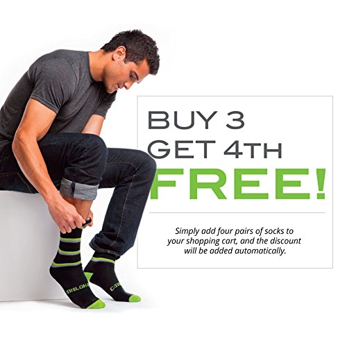 -. Binding : Apparel -. Brand : Cariloha -. Department : mens -. Feature : Simply add 4 pairs of socks to your shopping cart, and the discount will be added automatically! / Knitted together with odor-resistant bamboo blends, these socks are cozy and stylish in equal measure. / Designed with signature arch support and seamless toe construction, the thickness of the foot bed has been enhanced for plush bamboo comfort. / S/M: Size 7-10 L/XL: Size 10-13 / 85% Viscose from Bamboo, 10% Elastane, 5% Nylon -. IsAdultProduct : 0 -. PackageQuantity : 1 -. ProductGroup : Apparel -. ProductTypeName : SOCKSHOSIERY -. Title : Cariloha Men's Crazy Soft Crew Sock - Buy 3 Get 1 Free