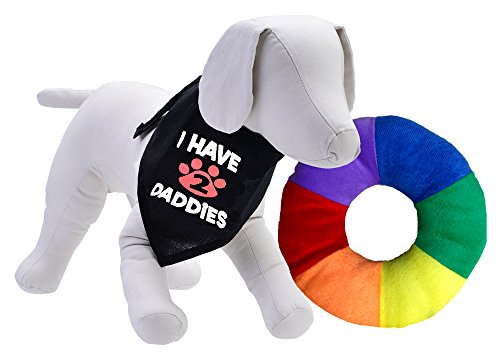 -. Feature : Bandana features "2 Daddies" theme / Colorful rainbow ring squeak toy to showcase pride / Together in one convenient set / Part of the Bis Dog collection