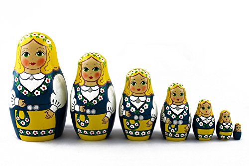 -. Title : Matryoshka Swedish Folk People National Costume Dress Babushka Russian Nesting Wooden Stacking Doll 7 Pcs