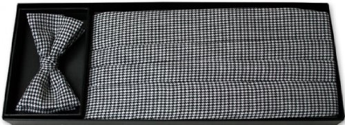 -. Title : Black and White Houndstooth Tuxedo Cummerbund and Bow Tie