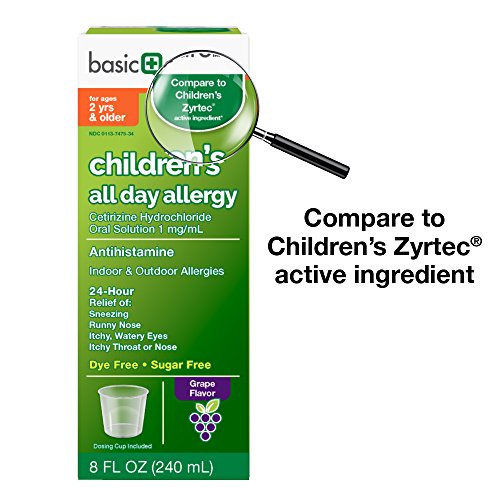 Product DescriptionBasic Care Children's All Day Allergy, Cetirizine HCl Oral Solution 1mg/mL, 8 Fluid Ounce0