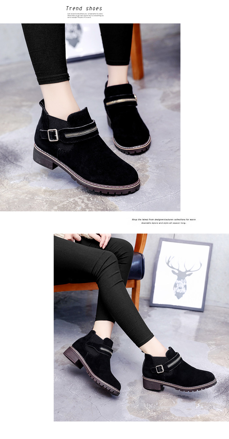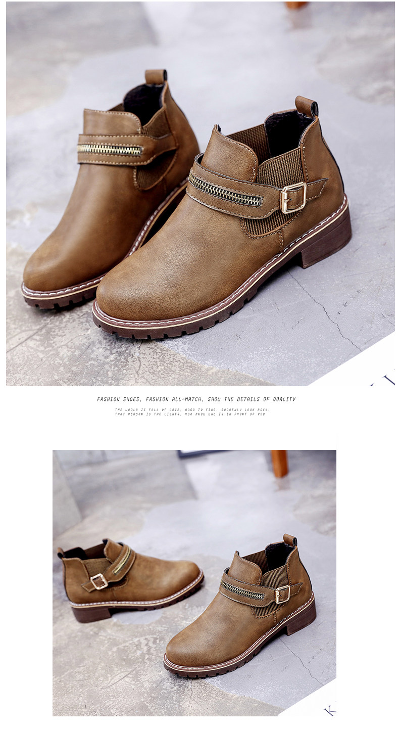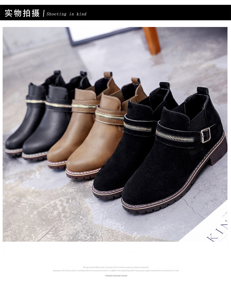 韩版小跟短靴女切尔西女靴秋季新款中跟圆头休闲百搭简约女鞋