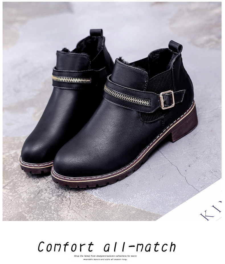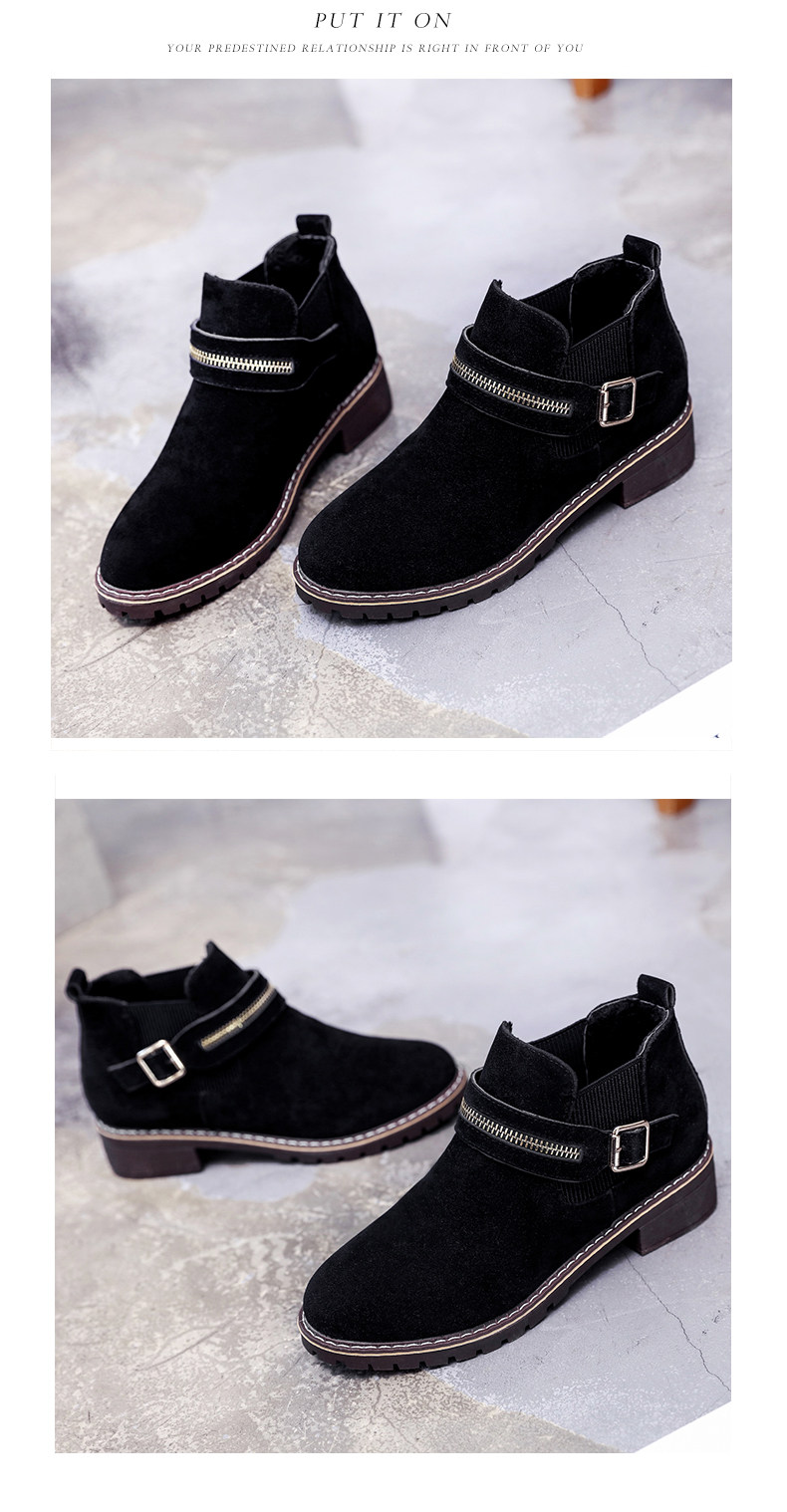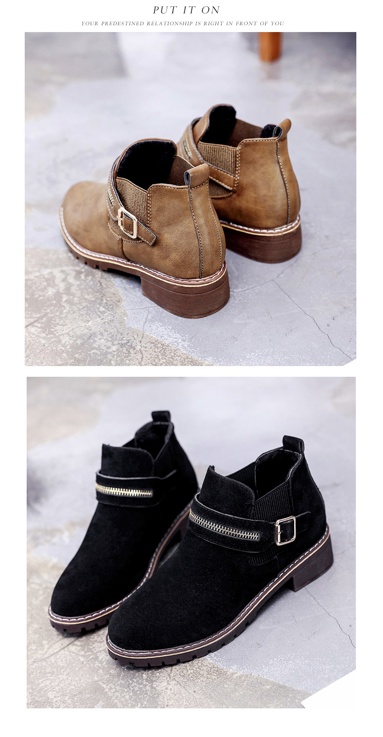 韩版小跟短靴女切尔西女靴秋季新款中跟圆头休闲百搭简约女鞋