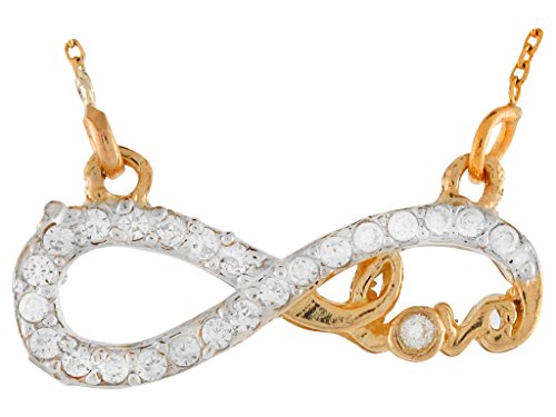 -. Title : 14k Yellow Gold Brilliant White CZ Studded Ladies Infinity Forever Love Necklace